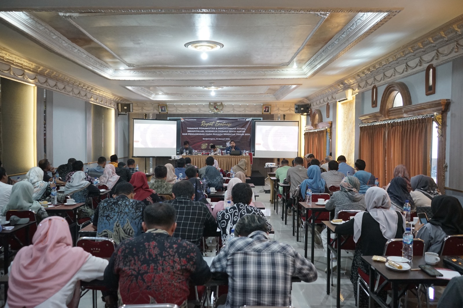 BANJARNEGARA - KPU Kabupaten Banjarnegara melaksanakan Rapat Kerja Evaluasi Tahapan Pemungutan dan Penghitungan Suara, Rekapitulasi, Sosdiklih, Partisipasi Masyarakat serta Hukum dan Pengawasan Pilkada Serentak 2024, Rabu, 15 Januari 2025.
