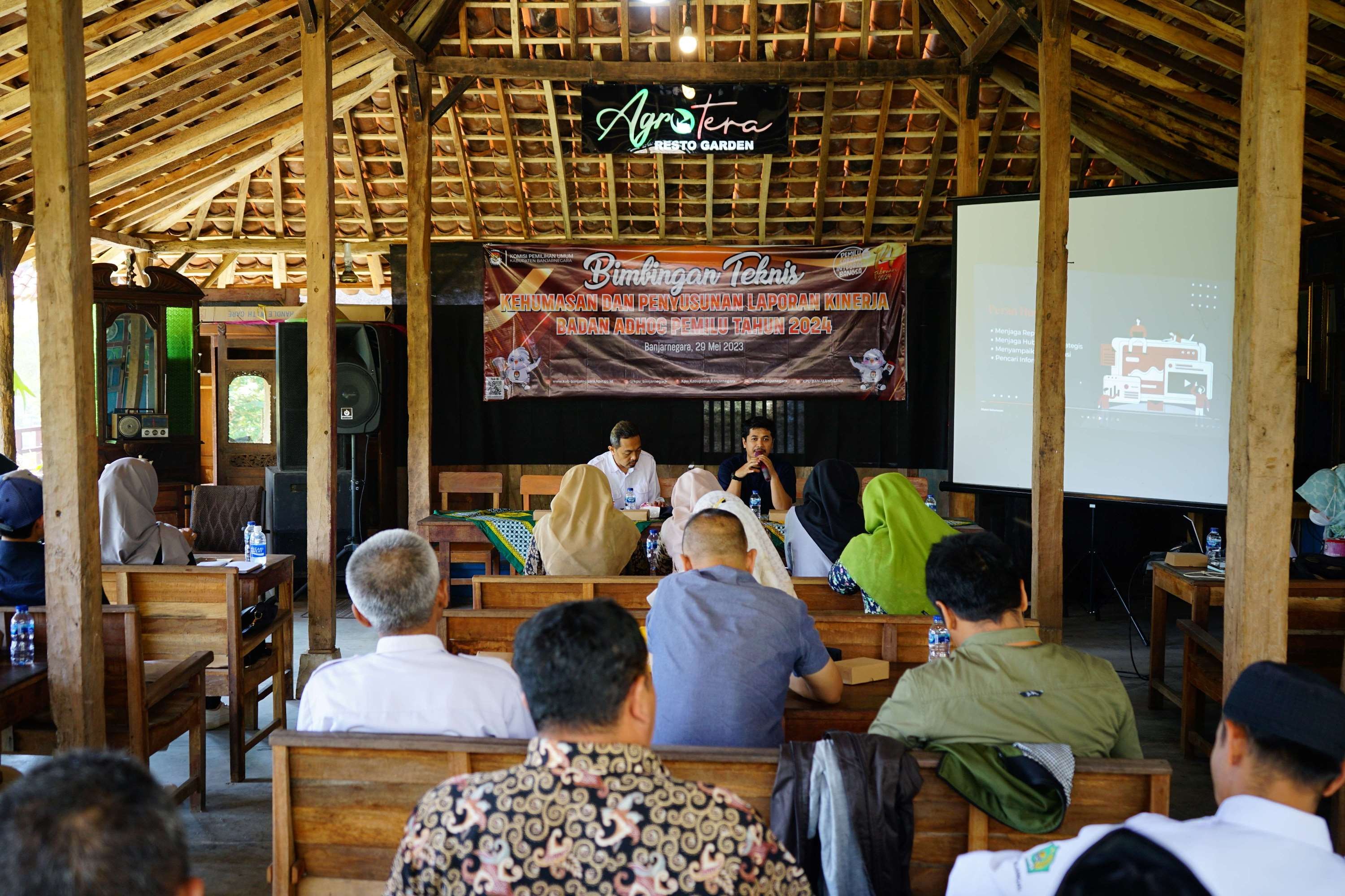 BANJARNEGARA – KPU Kabupaten Banjarnegara menggelar Bimbingan Teknis Kehumasan dan Penyusunan Laporan Kinerja Badan Adhoc Pemilu 2024 untuk Panitia Pemilihan Kecamatan (PPK), Senin (29/5/2023). Kegiatan dibuka Ketua KPU Kabupaten Banjarnegara, Bambang Puji Prasetya. Hadir lengkap para anggota KPU Kabupaten Banjarnegara, M Syarif SW, Uji Suroso, Khuswatun Chasanah dan Cahyani BR. Bimbingan teknis diikuti ketua PPK dan anggota PPK Divisi Sosialisasi Pendidikan Pemilih Partisipasi Masyarakat dan SDM. Anggota KPU Kabupaten Banjarnegara Divisi Sosialisasi Pendidikan Pemilih Partisipasi Masyarakat dan SDM, M Syarif SW, mengemukakan tujuan kegiatan itu untuk meningkatkan kapasitas SDM PPK, terutama di bidang kehumasan. Karena PPK dalam tugasnya berhubungan dengan banyak pihak. Selain itu juga untuk membekali PPK dalam menyusun laporan pelaksanaan kegiatan tahapan pemilu. Uje Hartono pemateri kehumasan yang merupakan jurnalis detik.com, menyampaikan humas penting dalam rangka menjaga reputasi lembaga/organisasi. Humas merupakan wajah atau halaman depan sebuah lembaga/organisasi sehingga harus mampu berperan dengan baik. Antara lain menjalin hubungan dengan para mitra di setiap tingkatan, menyampaikan informasi kepemiluan dan memberikan informasi akurat. PPK juga diajak untuk dapat memanfaatkan dan mengoptimalkan media sosial dalam menyampaikan sosialisasi dan pendidikan pemilih pemilu kepada masyarakat. Anggota KPU Kabupaten Banjarnegara Divisi Sosialisasi Pendidikan Pemilih Partisipasi Masyarakat dan SDM, M Syarif SW, menyampaikan materi tentang laporan kinerja badan adhoc yang wajib dibuat dan dilaporkan setiap sebulan sekali.
