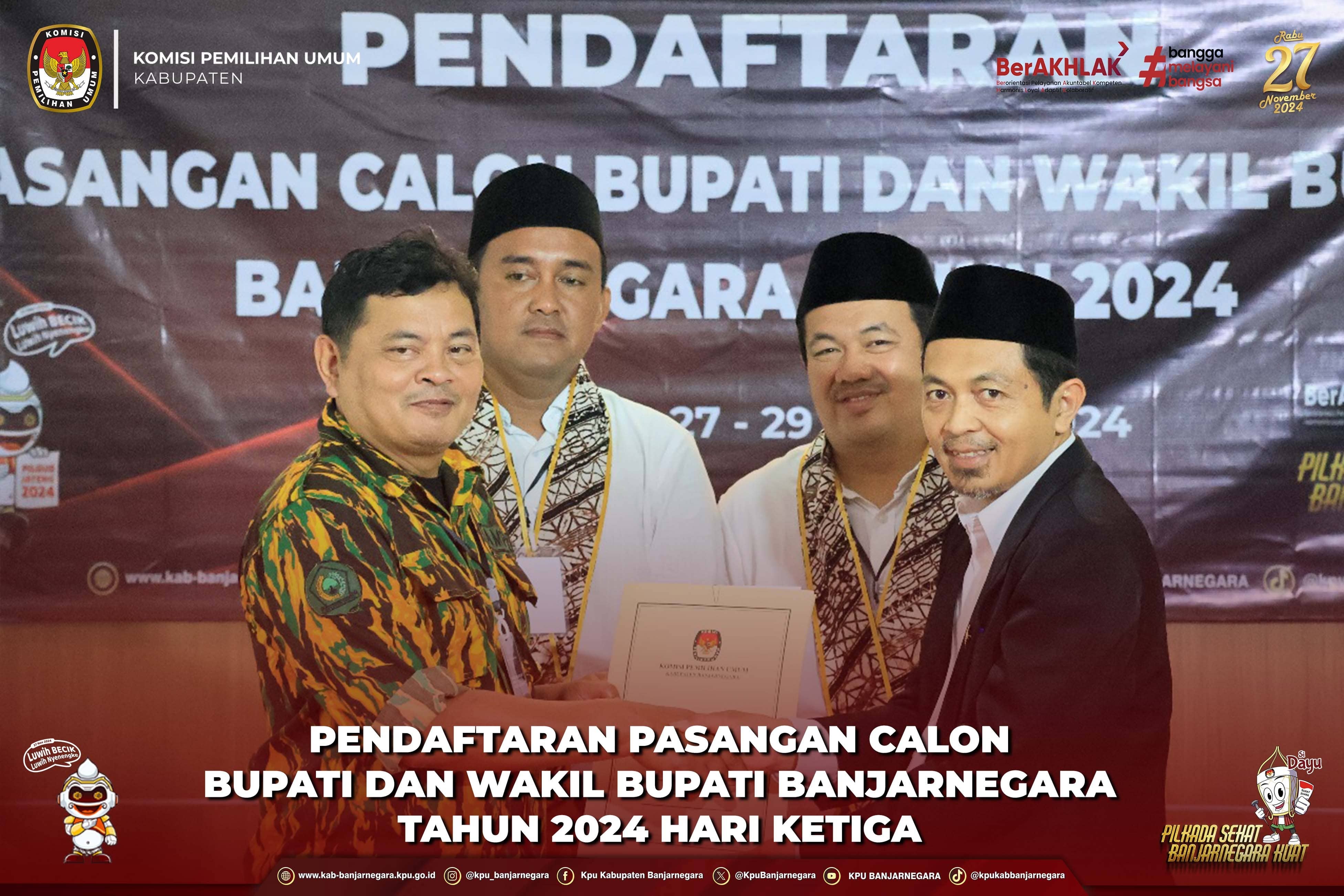 BANJARNEGARA - KPU Kabupaten Banjarnegara memfasilitasi Alat Peraga Kampanye (APK) dan Bahan Kampanye (BK) untuk seluruh pasangan calon bupati dan wakil bupati. Fasilitasi meliputi pembuatan, pemasangan, pemeliharaan dan pembersihan APK. Saat ini seluruh APK berupa baliho sudah terpasang di lokasi-lokasi strategis agar mudah diakses masyarakat. Demikian juga APK berupa spanduk sudah dipasang di seluruh desa/kelurahan di Kabupaten Banjarnegara. Adapun untuk Bahan Kampanye, sudah diserahterimakan kepada semua pasangan calon untuk disebarkan atau dibagikan kepada masyarakat. Bahan Kampanye fasilitasi berupa brosur diserahkan pada Jumat,1 November 2024, kepada masing-masing pasangan calon sebanyak 232.000 lembar. Fasilitasi tersebut untuk menyebarluaskan informasi kepada masyarakat hingga ke pelosok desa tentang pasangan calon bupati dan wakil bupati serta hari, tanggal, bulan dan tahun coblosan Pemilihan Bupati dan Wakil Bupati Banjarnegara Tahun 2024. "Fasilitas alat peraga kampanye dan bahan kampanye dilaksanakan sesuai regulasi dan berdasarkan kemampuan anggaran. Alhamdulillah APK fasilitasi berupa baliho sudah terpasang, spanduk juga sudah dipasang di seluruh desa/kelurahan di Kabupaten Banjarnegara. Adapun untuk bahan kampanye fasilitasi berupa brosur sudah diserahkan kepada masing-masing pasangan calon bupati dan wakil bupati melalui tim kampanye masing-masing. Proses serah terima disaksikan oleh Bawaslu Banjarnegara," kata Ketua KPU Kabupaten Banjarnegara, M Syarif SW.