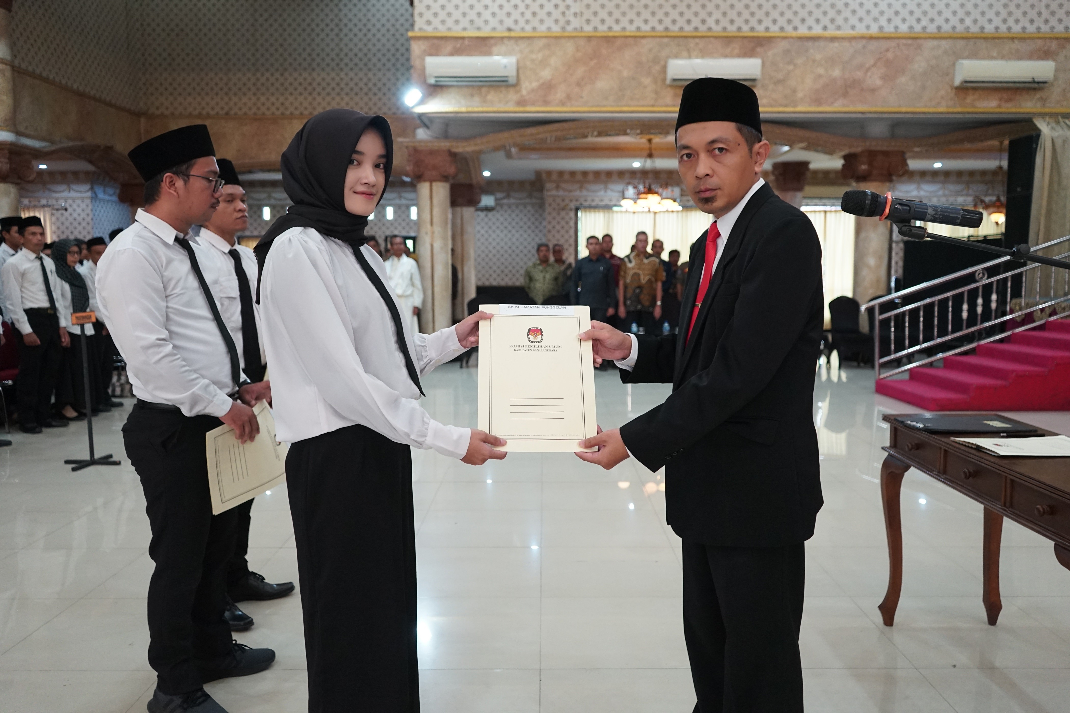 Anggota KPU Jawa Tengah Muslim Aisha, Ketua KPU Banjarnegara M Syarif SW, menyaksikan rangkaian proses coklit salah seorang tokoh masyarakat di Banjarnegara BANJARNEGARA - Sebanyak 3.044 petugas pemutakhiran data pemilih (Pantarlih) Pemilihan Gubernur dan Wakil Gubernur Jawa Tengah, Bupati dan Wakil Bupati Banjarnegara Tahun 2024 telah dilantik, pada Senin, 24 Juni 2024. Mereka bertugas di 1.674 tempat pemungutan suara (TPS) untuk melakukan pendataan pemilih Pemilihan Gubernur dan Wakil Gubernur Jawa Tengah, Bupati dan Wakil Bupati Banjarnegara Tahun 2024. "Setelah dilantik pada hari ini secara serentak, mereka kemudian dibimtek. Setelah itu melaksanakan pencocokan dan penelitian (coklit) serentak kepada masyarakat dan juga tokoh masyarakat, " kata Ketua KPU Kabupaten Banjarnegara, M Syarif SW. Pantarlih akan mengunjungi masyarakat yang telah memenuhi syarat sebagai pemilih untuk didata sebagai pemilih Pilkada Serentak 2024. Anggota KPU Provinsi Jawa Tengah, Muslim Aisha yang mendampingi pantarlih saat melakukan coklit di rumah Ketua DPC Syarikat Islam Banjarnegara, Musobihin, berpesan agar dalam proses pencocokan dan penelitian data pemilih oleh Pantarlih dilakukan secara cermat. Jangan sampai ada pemilih atau anggota masyarakat yang sudah memenuhi syarat sebagai pemilih tapi tidak tercatat. (*)