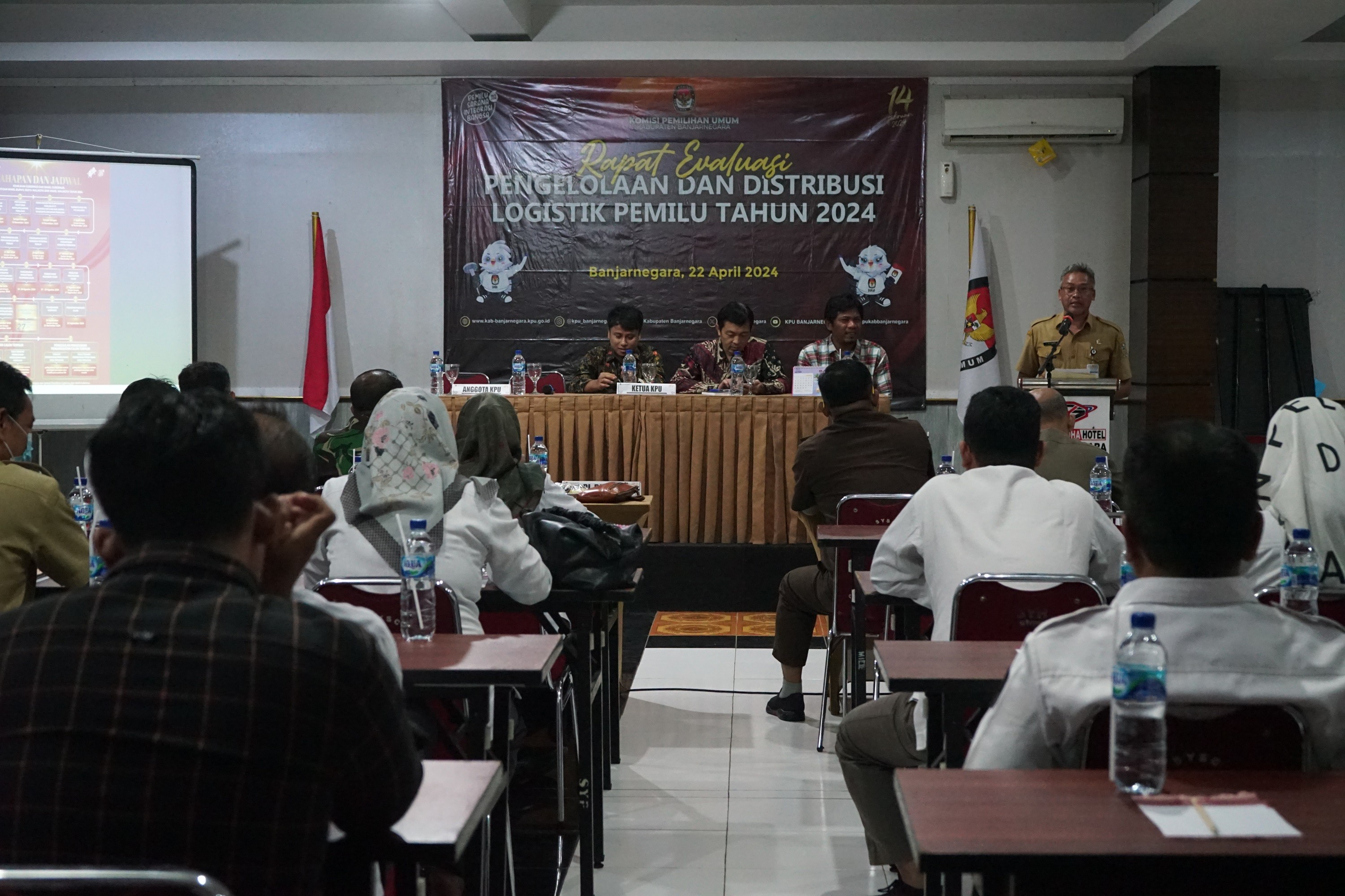 BANJARNEGARA - Sampai dengan hari terakhir masa pemenuhan dan penyerahan syarat dukungan bakal pasangan calon perseorangan dalam Pemilihan Bupati dan Wakil Bupati Banjarnegara Tahun 2024, tidak ada bakal pasangan calon perseorangan yang melakukan pemenuhan dan penyerahan dukungan ke KPU Kabupaten Banjarnegara. ‘’Sampai dengan Minggu, 12 Mei 2024 pukul 23.59 tidak ada bakal pasangan calon perseorangan yang menyerahkan syarat dukungan kepada kami. Pemenuhan dan penyerahan syarat dukungan sudah kami buka sejak 8 Mei sampai dengan 12 Mei 2024 pukul 23.59 WIB,’’ kata Ketua KPU Kabupaten Banjarnegara, M Syarif SW. Pada hari Minggu, 12 Mei 2024, Bawaslu Kabupaten Banjarnegara juga melaksanakan pengawasan dan turut menunggu di kantor KPU Kabupaten Banjarnegara sampai dengan pukul 23.59 WIB. Hal itu sebagai bentuk pemantauan dan pengawasan kalau-kalau ada bakal pasangan calon perseorangan yang datang dan menyerahkan dukungan pada detik-detik akhir masa penerimaan. Pengumuman secara terbuka kepada publik tentang pemenuhan dan penyerahan persyaratan dukungan bakal pasangan calon perseorangan tersebut, disampaikan KPU Kabupaten Banjarnegara melalui Pengumuman Nomor : 353/PL.02.2-PU/3304/2/2024 tentang Pemenuhan dan Penyerahan Syarat Dukungan Bakal Calon Perseorangan Dalam Pemilihan Bupati dan Wakil Bupati Banjarnegara Tahun 2024. ‘’Sebelum dan setelah ada pengumuman tersebut, dapat kami sampaikan juga tidak ada pihak yang berkonsultasi mengenai pemenuhan dan penyerahan syarat dukungan bakal pasangan calon perseorangan kepada KPU Kabupaten Banjarnegara,’’ ujar Syarif menambahkan. Dalam pengumuman disampaikan persyaratan minimal dukungan bakal pasangan calon perseorangan sejumlah 59.618 orang pendukung yang tersebar paling sedikit di 11 kecamatan. Selanjutnya surat pernyataan dukungan dilampiri bukti identitas kependudukan berupa fotokopi KTP elektronik atau fotokopi surat perekaman KTP elektronik dari Dinas Kependudukan dan Catatan Sipil.(*)