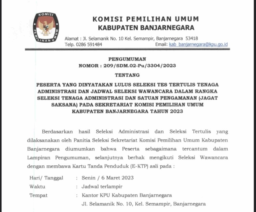 BANJARNEGARA – KPU Kabupaten Banjarnegara melaksanakan verifikasi faktual ke-1 dukungan bakal calon anggota Dewan Perwakilan Daerah (DPD) di wilayah Kabupaten Banjarnegara. Sebelumnya KPU Kabupaten Banjarnegara sudah melaksanakan koordinasi baik dengan petugas penghubung masing-masing bakal calon anggota DPD maupun dengan Bawaslu.